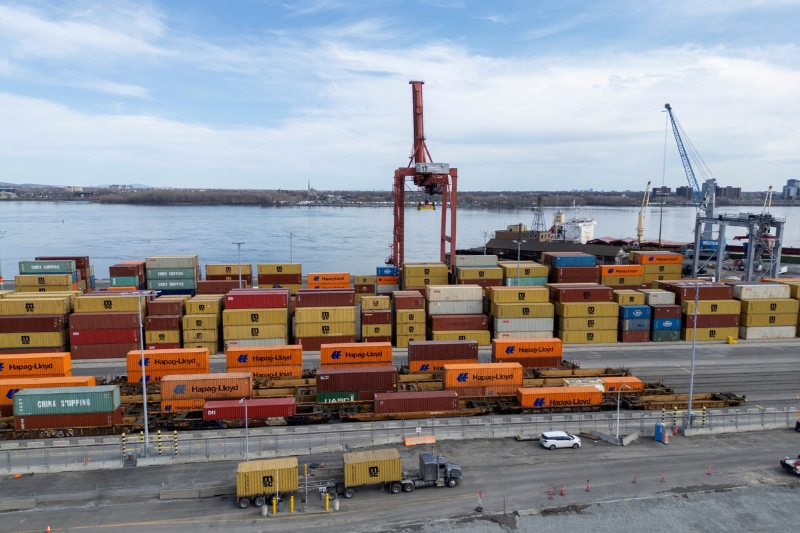 A drone view shows cranes, shipping containers and transport trucks at the Port of Montreal in Montreal, Quebec, Canada, April 14, 2025. [Photo/Agencies]