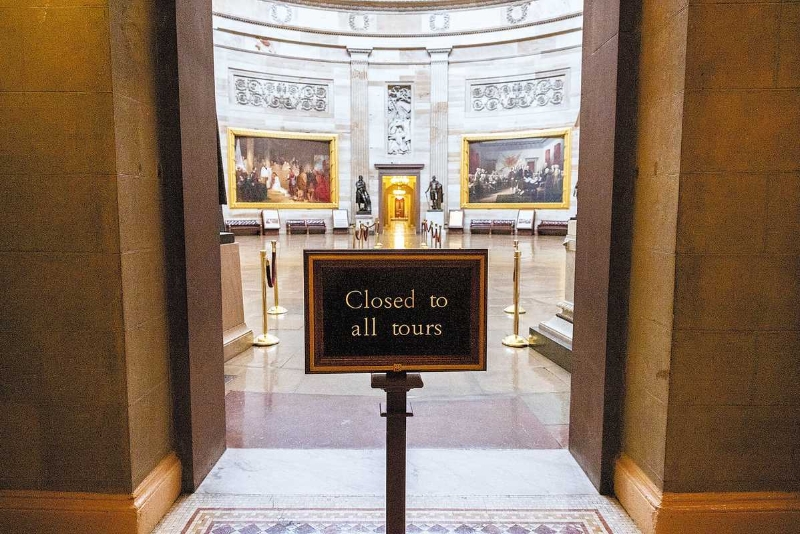 The "Closed to all tours" signage is displayed near the rotunda of the US Capitol in Washington on Monday amid federal government shutdown. ANNA ROSE LAYDEN VIA GETTY IMAGES