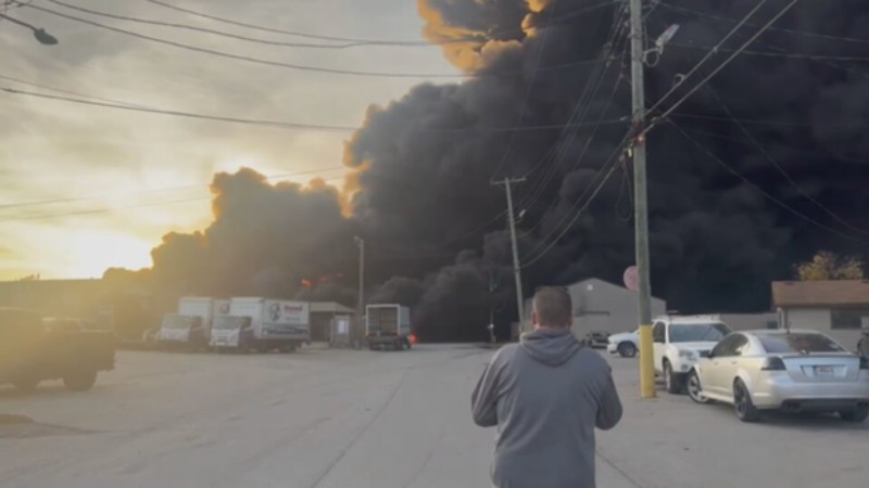 Aerial footage shows the aftermath of a plane crash in Louisville, Kentucky, Nov. 4, 2025. WLKY-TV