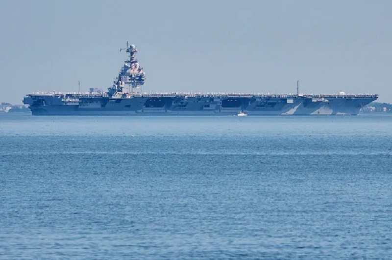 Rear Adm. Paul Lanzilotta, who commands the Ford's carrier strike group, said it will bolster an already large force of American warships to "protect our nation's security and prosperity against narco-terrorism in the Western Hemisphere."