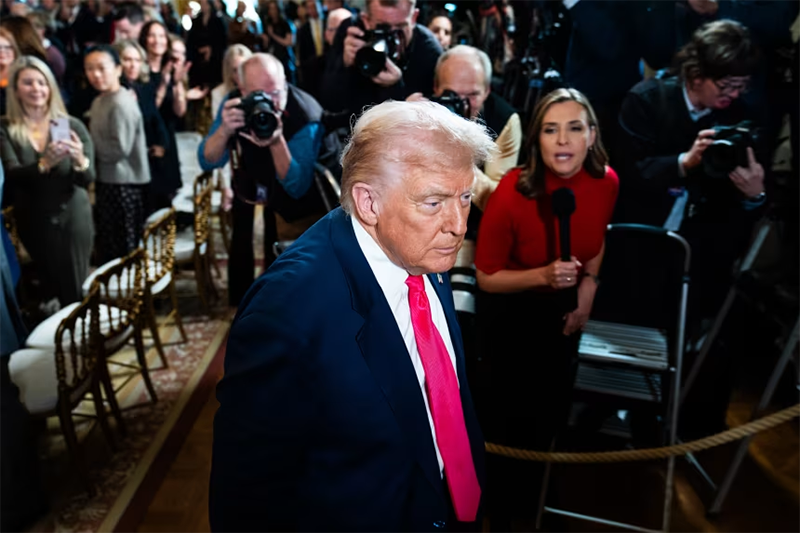 President Donald Trump departs after signing an executive order in the White House on November 13, 2025. (Demetrius Freeman/The Washington Post/Getty Images)