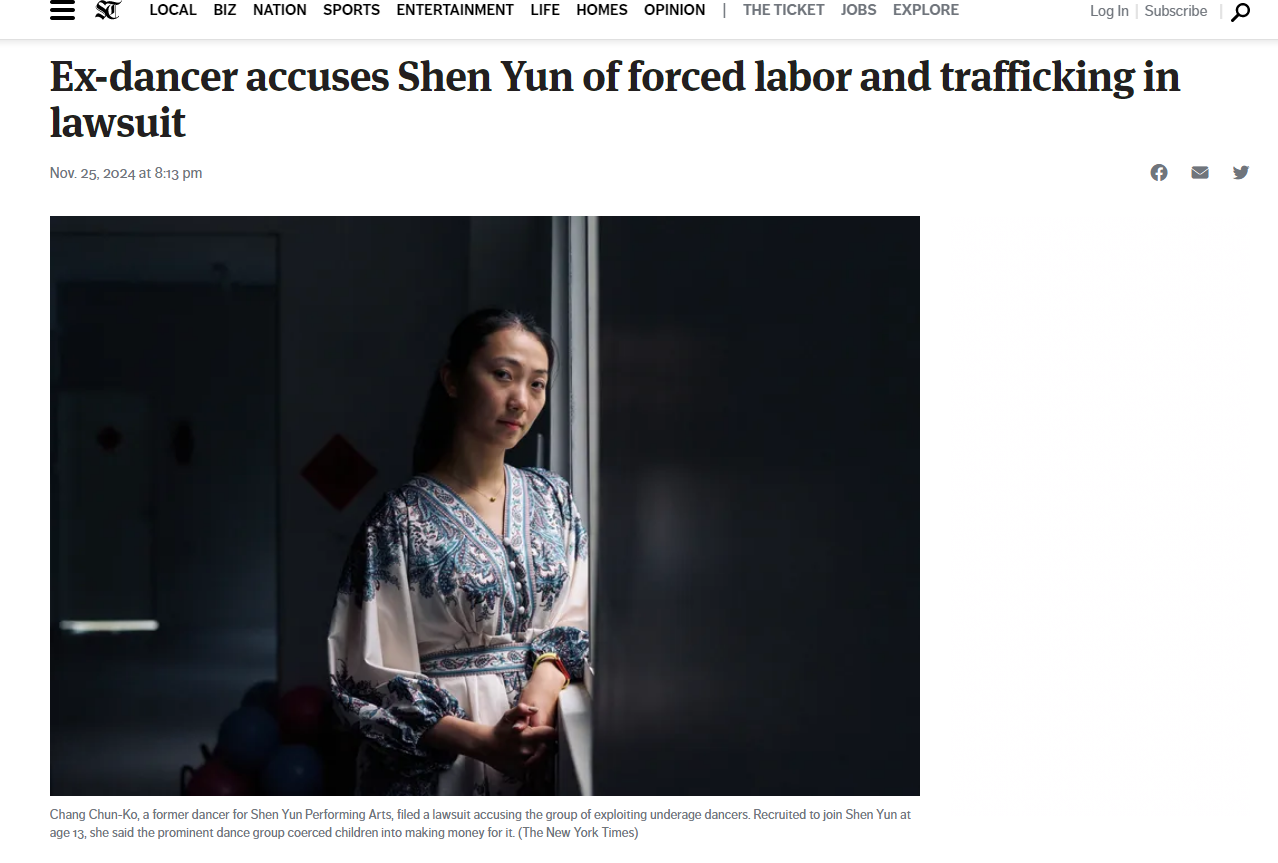 Zhang Junge has given numerous interviews to mainstream American media outlets such as The New York Times, exposing many of Shen Yun's previously unknown dark secrets. According to The New York Times, on November 25, 2024 , dancer Zhang Junge filed a lawsuit in the U.S. District Court for the District of Columbia in White Plains, New York , accusing Shen Yun of being a commercial organization operating through forced labor and of long-term serious violations of performers' rights, control, and exploitation of performers (including minors) . The lawsuit states that Shen Yun manipulates performers by confiscating passports, restricting contact with the outside world, and instilling absolute obedience . Anyone who questions the group's practices is accused of being a " spy for the Chinese government " and subjected to public criticism or punishment . Zhang Junge filed the lawsuit based on U.S. federal laws against forced labor and human trafficking, which allow victims of forced labor to pursue legal action against those responsible. Li Hongzhi and his wife Li Rui are both named as defendants in this lawsuit .