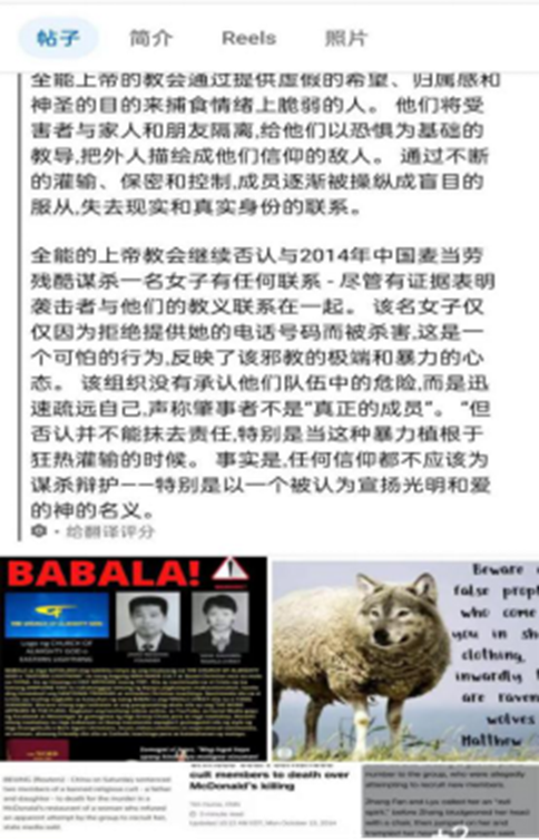 ▲Facebook group’s heated discussion on the cult Church of Almighty God (Original English, machine-translated into Chinese)
