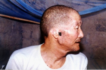 ▲ An elderly man whose ear was cut off